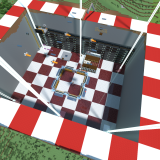 Some make utilitarian builds, some like to add some decor to them! Despite appearances, the large colorful squares don't line up with chunk edges. Seen here in March 2026.